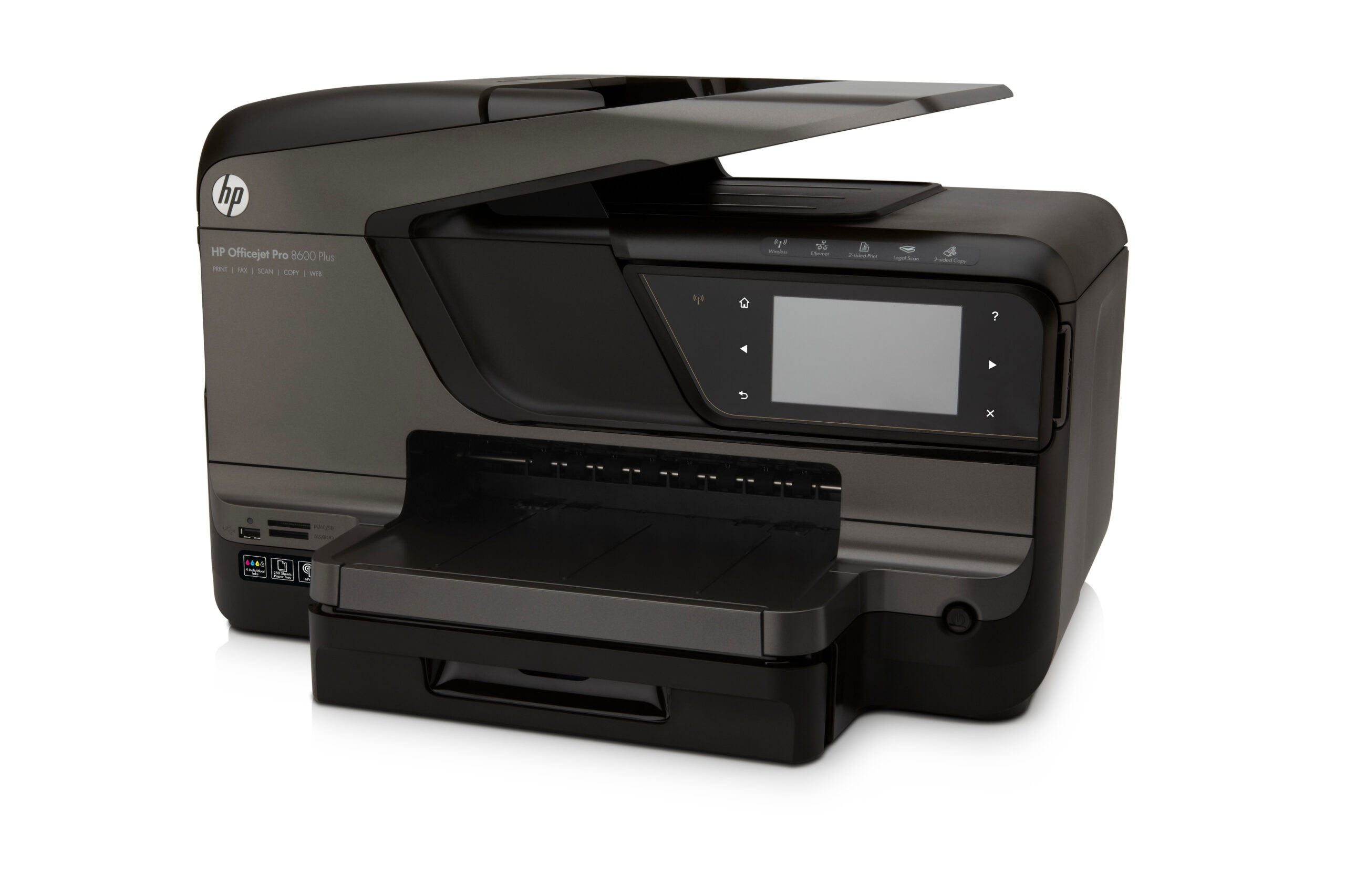 The HP OfficeJet Pro 8600 Plus provides print professional-quality colour for up to 50% lower cost per page than lasers with this productivity-enhancing e-all-in-one. Print using the touchscreen, via your wireless network or from direct from mobile devices with HP ePrint.