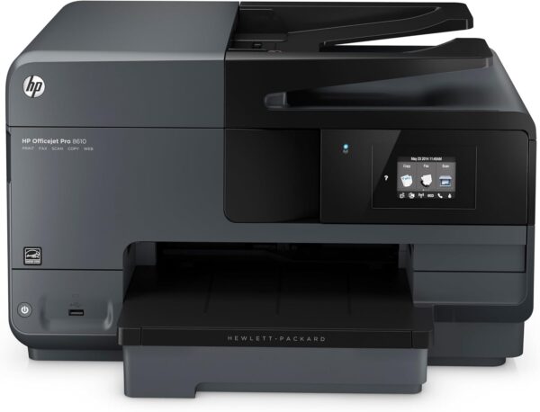 HP OfficeJet Pro 8610 e-All-in-One. Print technology: Thermal inkjet, Printing: Colour printing, Maximum resolution: 4800 x 1200 DPI, Print speed (colour, normal quality, A4/US Letter): 14.5 ppm. Copying: Colour copying, Maximum copy resolution: 1200 x 600 DPI. Scanning: Colour scanning, Optical scanning resolution: 1200 x 1200 DPI. Faxing: Colour faxing. Maximum ISO A-series paper size: A4. Wi-Fi. Direct printing. Product colour: Black
